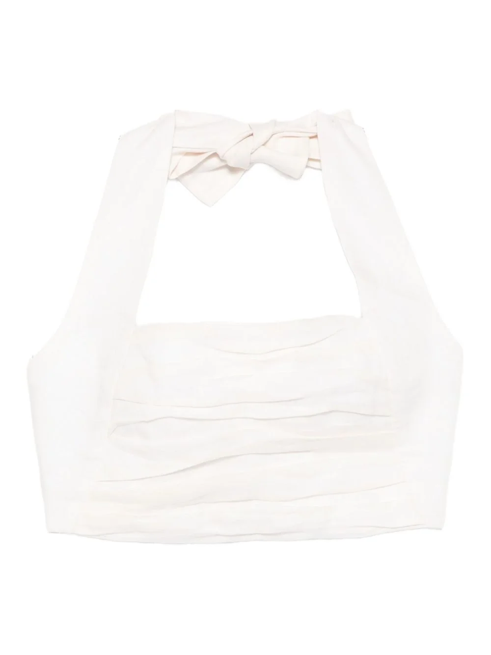 Fiji crop top Highlights - Ecru - Halterneck tie fastening - Smocked panel - Gathered detailing Imported Composition Cotton 100% SIZE & FIT Model measurements Height 5 ft 11 in(1.8 m) Bust/Chest 31.49 in(80 cm) Hips 36.61 in(93 cm) Waist 24.4 in(62 cm)
