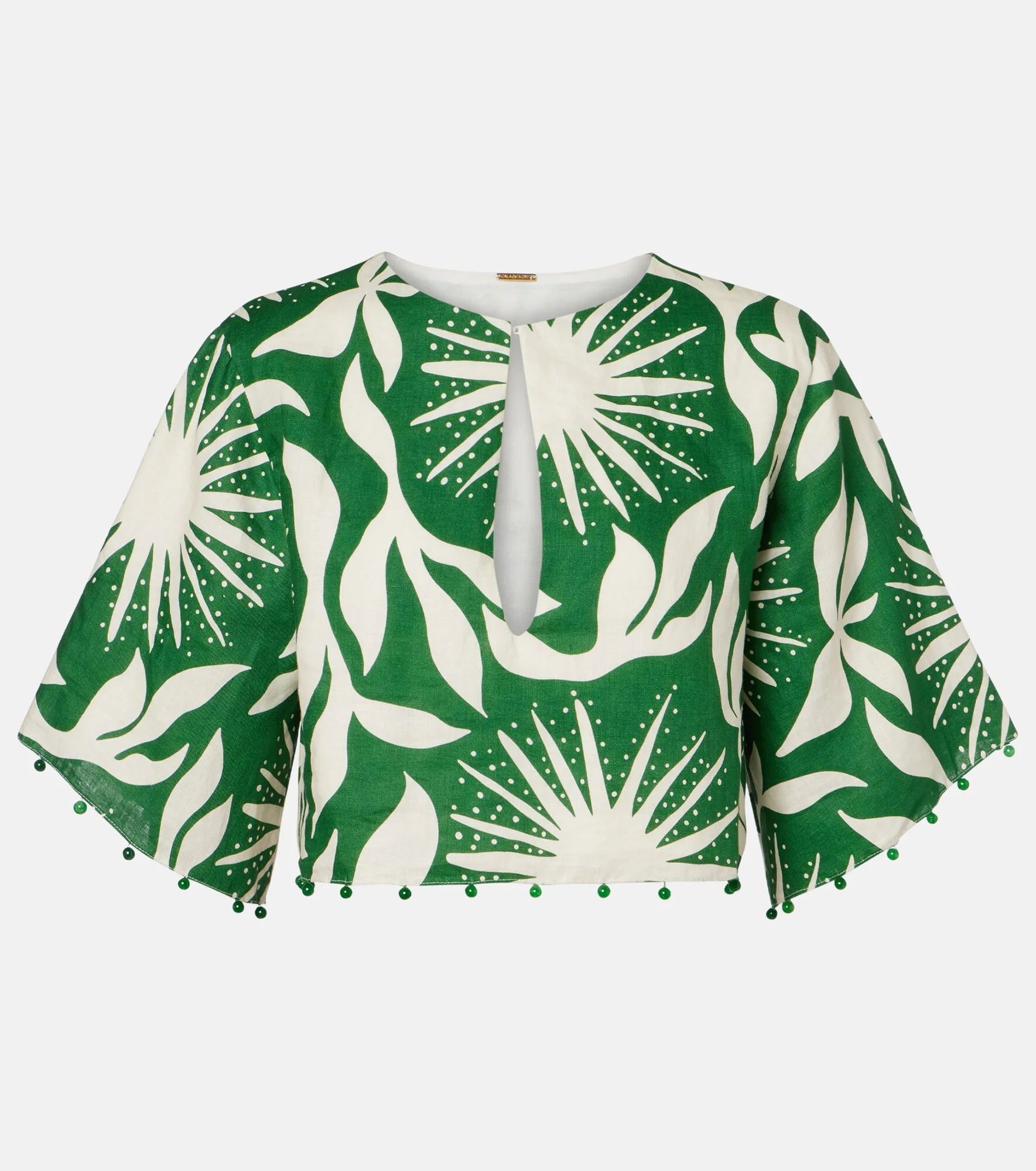 Iris beaded printed linen crop top