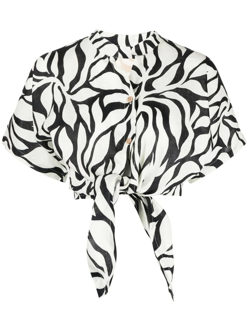 Leroy tie-fastening linen shirt Highlights - Ash grey/alabaster - Linen/flax - Botanical print - Collarless - Short sleeves - Front button fastening - Front tie fastening - Cropped Imported Composition Linen/Flax 100% SIZE & FIT Model measurements Height 5 ft 11 in(1.8 m) Bust/Chest 28.34 in(72 cm) Hips 35.43 in(90 cm) Waist 23.62 in(60 cm) Washing instructions Dry Clean Only
