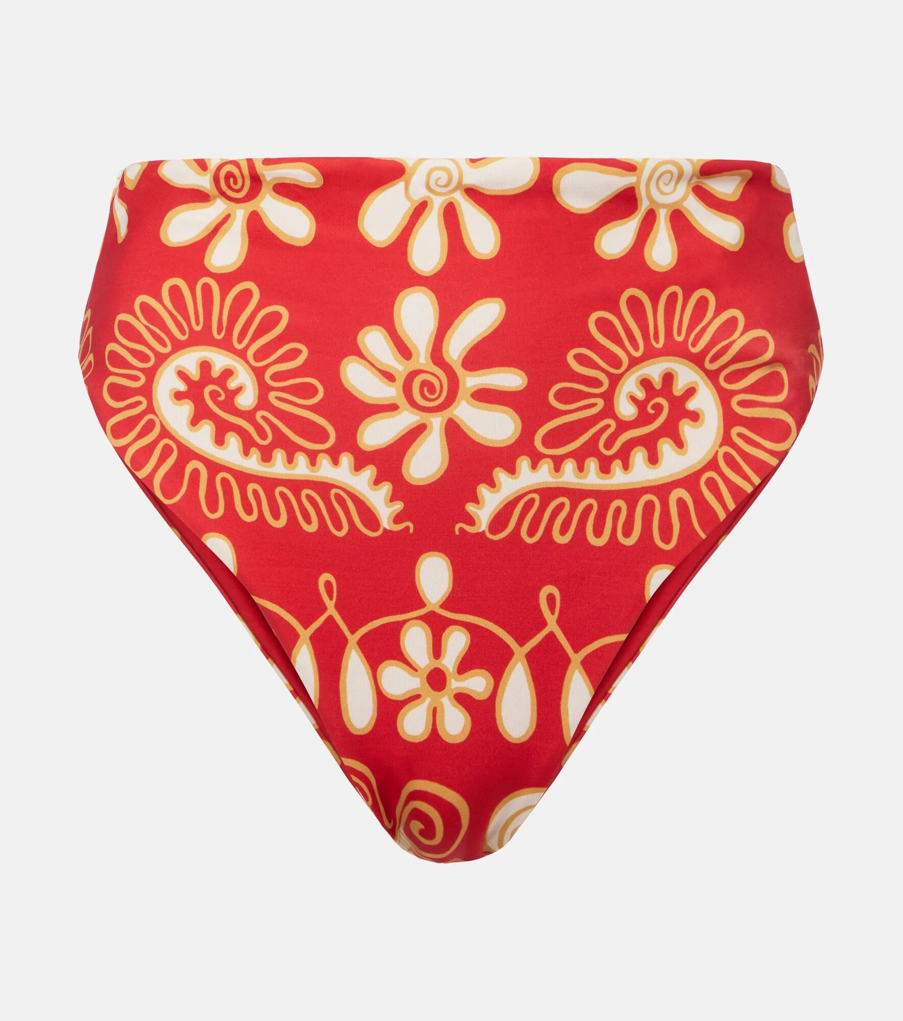 At Cala de la Cruz, vintage-inspired silhouettes and modern sophistication intersect to create striking designs. The Lulu bikini bottoms feature a high-rise waist, high-cut legs, and a summery print. Product Details - Material: 78% polyester, 22% elastane - Care instructions: hand wash - Made in Colombia - Color: red - Designer color name: Namurcarmin - Item color: red, yellow - Item number: P01122128 Size & Fit - True to size - High-waisted - High-cut leg - The model seen in the picture is 178cm-5'10" and wearing a size XS