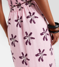 At Cala de la Cruz, vintage-inspired silhouettes and modern sophistication intersect to create striking designs. The Magda maxi skirt is crafted from pure linen and detailed with eye-catching florals. Product Details - Material: 100% linen - Care instructions: dry clean - Made in Colombia - Color: pink - Designer color name: Cattleya - Item color: pink - Lining: 100% cotton - Elasticated waistband - Long vent - Item number: P01122119 Size & Fit - True to size - Elasticated waist - Non-stretchy fabric - The model seen in the picture is 178cm-5'10" and wearing a size XS