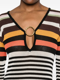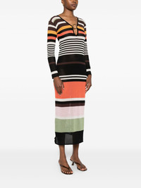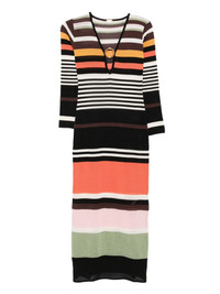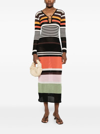 Magna midi dress Highlights - Chocolate brown - Long sleeves - Horizontal stripe pattern Imported Composition Cotton 67%, Viscose 25%, Alpaca Wool 8% SIZE & FIT Model measurements Height 5 ft 11 in(1.8 m) Bust/Chest 31.49 in(80 cm) Hips 36.61 in(93 cm) Waist 24.4 in(62 cm) Washing instructions Hand Wash