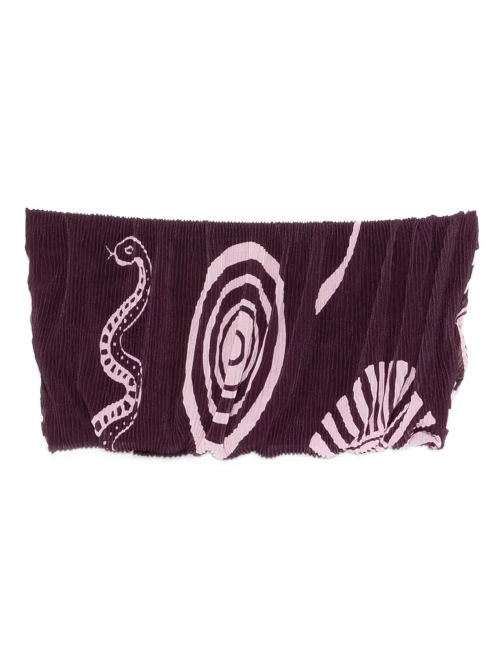 Odessa strapless top Highlights - Purple - Graphic print - Cropped - Ribbed texture Imported Composition Outer: Recycled Polyamide 50%, Polyester 44%, Spandex/Elastane 6% Lining: Polyamide 78%, Spandex/Elastane 22% SIZE & FIT Model measurements Height 5 ft 10 in(1.78 m) Bust/Chest 31.49 in(80 cm) Hips 37 in(94 cm) Waist 23.62 in(60 cm) Washing instructions Hand Wash