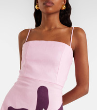At Cala de la Cruz, vintage-inspired silhouettes and modern sophistication intersect to create striking designs. Crafted from pure linen, the Roma minidress features an eye-catching floral print and bandeau-style neckline. Product Details - Material: 100% linen - Care instructions: spot clean - Made in Colombia - Color: pink - Designer color name: Cattleya - Item color: pink - Closure: concealed zipped back - Item number: P01122134 Size & Fit - True to size - Low back - Cinched waist - Non-stretchy fabric - The model seen in the picture is 178cm-5'10" and wearing a size XS