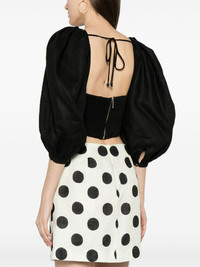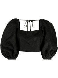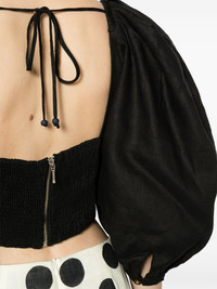 Sami cropped linen blouse Highlights - Black - Linen/flax - Smocked panel - Seam detailing - Square neck - Rear zip and tie fastening - Three-quarter length puff sleeves - Cropped Imported Composition Outer: Linen/Flax 100% Lining: Cotton 100% SIZE & FIT Model measurements Height 5 ft 10 in(1.78 m) Bust/Chest 30.31 in(77 cm) Hips 34.64 in(88 cm) Waist 24.01 in(61 cm) FittingInformation Designed for a close fit throughout Made from a midweight non-stretch fabric This piece fits close in all sizes – take your usual size