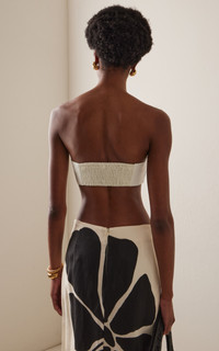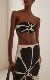 Hailing from Cali, Colombia, Cala de la Cruz is the brainchild of Carolina Lopez, who harnesses her expertise in textiles, bold prints, and mesmerizing color combinations into responsibly fabricated and produced warm-weather treasures that exude a joyful ease. The 'Santa Cruz' top has a classic bandeau silhouette. Pair it with the matching skirt. PRODUCT DETAILS - Spring '25 - Slip on - Composition: 100% linen - Designer color: Camel - Dry clean - Made in Colombia SIZE & FIT - Designed for a slim fit