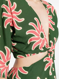 Tado cut-out maxi dress Highlights - Dark green/multicolour - Ecovero™ blend - A-line - All-over graphic print - Cut-out and knot detailing - Plunging v-neck - Elasticated waistband - Three-quarter length sleeves - Side slits - Straight hem - Full lining Imported Composition Viscose 100% SIZE & FIT Model measurements Height 5 ft 10 in(1.78 m) Bust/Chest 30.31 in(77 cm) Hips 34.64 in(88 cm) Waist 24.01 in(61 cm) FittingInformation Designed for a slim fit that sits just away from the body offering a close yet comfortable fit Made from a midweight non-stretch fabric This piece fits true to size – take your usual size