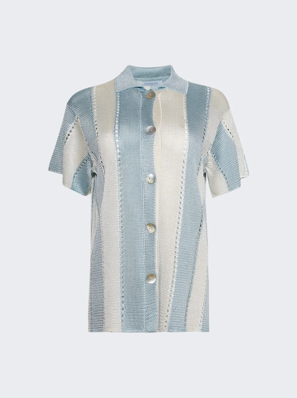 Details - Relaxed fit - Pointed collar - Short sleeves - Delicate pointelle detailing - Button closure - Side slit - Straight hem - Care according to label - Material: 100% Viscose - Model is 5'9"/175cm and is wearing a size S Brand Style: CDM-SS202-TID Designer/Brand: CALLE DEL MAR