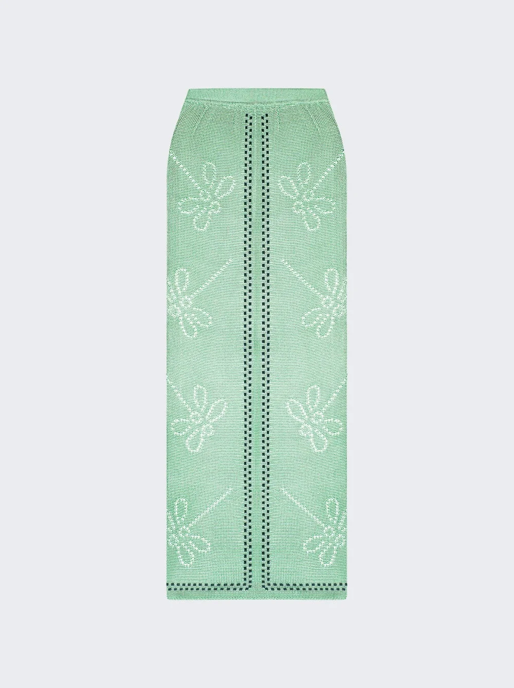 Details - A-line fit - Midi length - Delicate motifs - Ankle length hem - Pointelle dragonfly motifs and contrast-dotted intarsia design - Care according to label - Material: 100% Viscose Size Information: Vendor Color Code: Brand Style: CDM-PS022-EUC Designer/Brand: CALLE DEL MAR