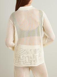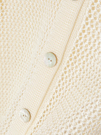 Aza Ziegler's extensive collection of vintage finds influences each of Calle Del Mar's collections. This crocheted cardigan has an authentic retro feel to it, with a smart collar and geometric motifs along the hem and cuffs. Style yours with pearl jewelry to complement the glossy buttons. Lower-Impact Materials. This product is made using at least 50% lower-impact materials or ingredients. Responsible Craftsmanship. This product promotes artisanal skills and a brand that invests in communities and adheres to fair-trade principles. Find out more about our NET SUSTAIN criteria here.