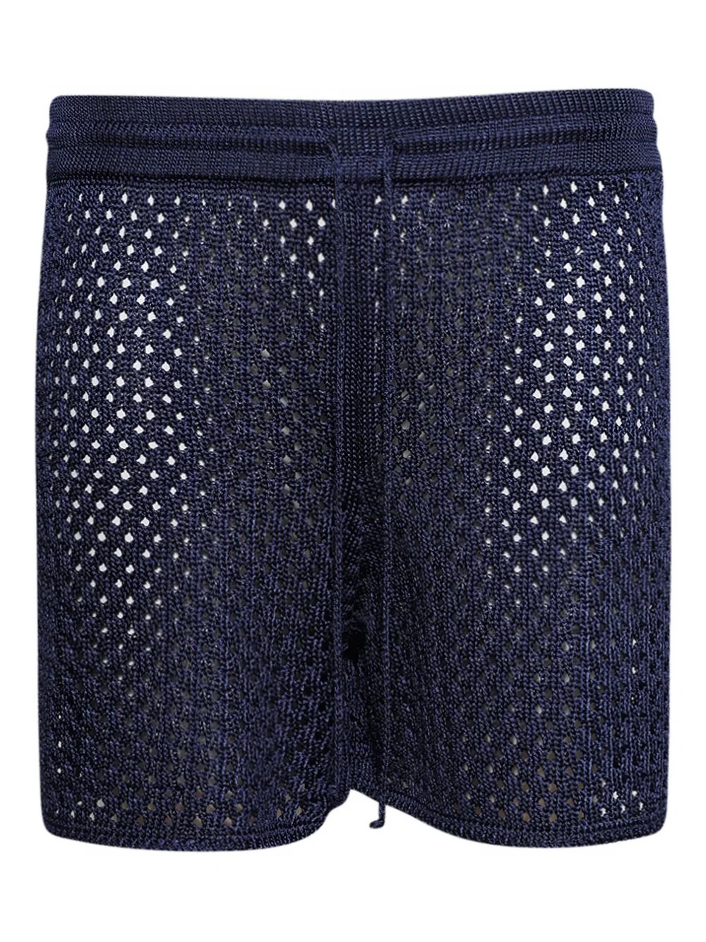 open-knit shorts Highlights - Navy blue - Open knit - Drawstring fastening - Ribbed waistband Imported Composition Viscose 100% Washing instructions Read Manufacturer Guidelines