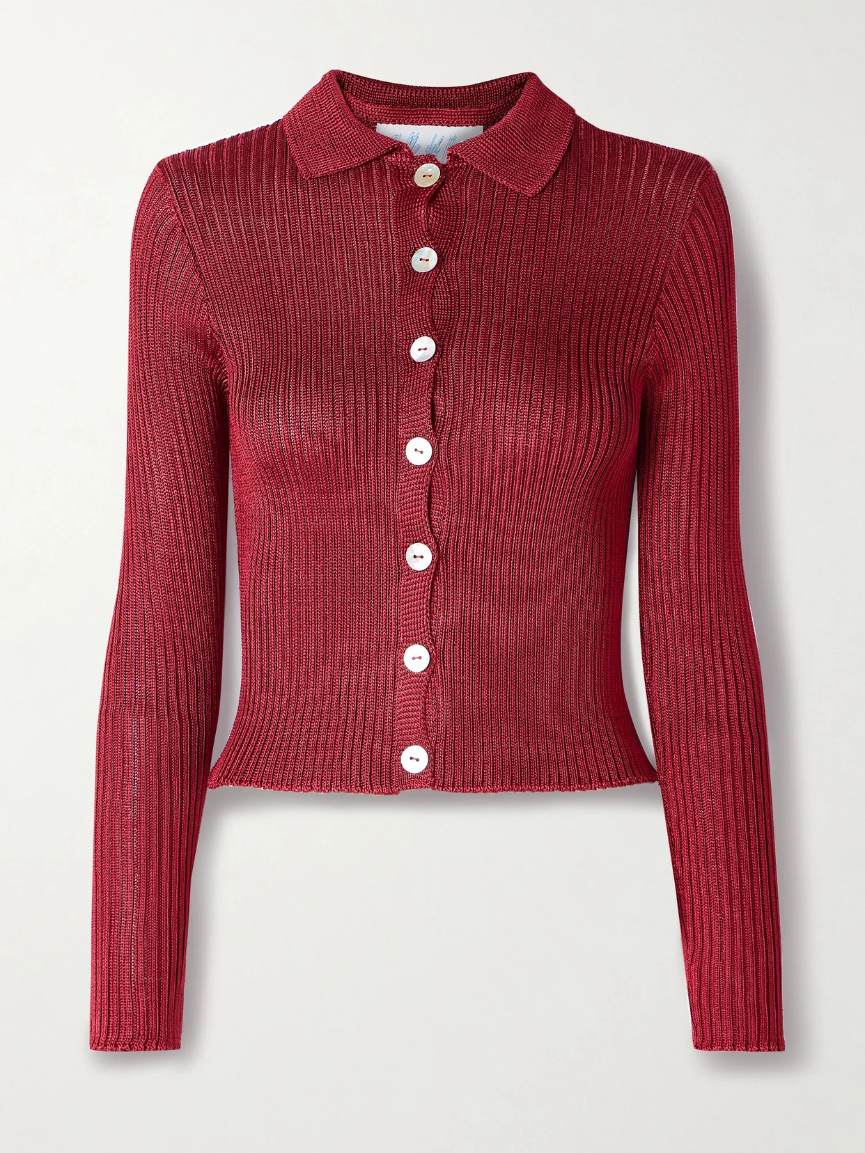 Made locally in LA, Calle Del Mar's cropped cardigan has been hand-knitted with fine ribs for a slim fit - the yarn used is produced with FSC-certified pulp. It has a classic point collar and buttoned placket.