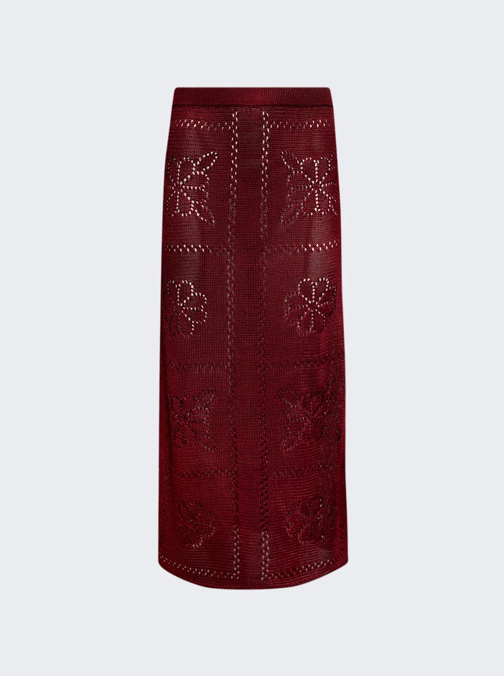 Details - Long skirt in an intricate pointelle stitch - Floral tile motifs inspired by heirloom crochet tablecloths - Slips on, relaxed fit - Material: 100% Viscose Size Information: Vendor Color Code: Brand Style: CDM-PS025 Designer/Brand: CALLE DEL MAR