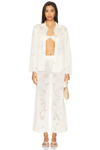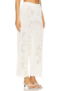 - 100% viscose - Dry clean only - Pull-on styling with elastic waistband - Perforated floral detailing - Midweight knit fabric Garment is made with a semi-sheer fabric, undergarments can show through - Item not sold as set.25" at the knee and 25" at the leg opening - Revolve Style No. CDEL-WP1 - Manufacturer Style No. CDM-PP006