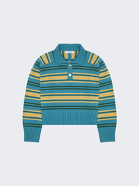 Paper Stripe Cashmere Polo Lake Blue