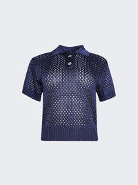 Sporty Perforated Polo Navy