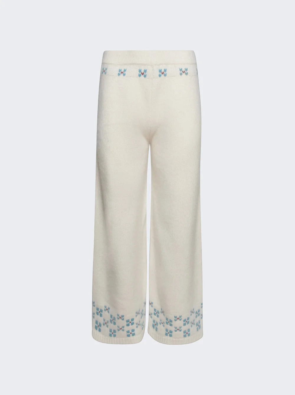Details - Fair Isle pants, inspired by Alpine getaways - Knit in Los Angeles from premium Italian cashmere - Snow-white with subtle intarsia near the waistband and hem - Relaxed fit, ribbed hem - Care: Dry Clean Only. Comb Occasionally. - Material: 100% Cashmere Size Information: Vendor Color Code: Brand Style: CDM-CP515 Designer/Brand: CALLE DEL MAR