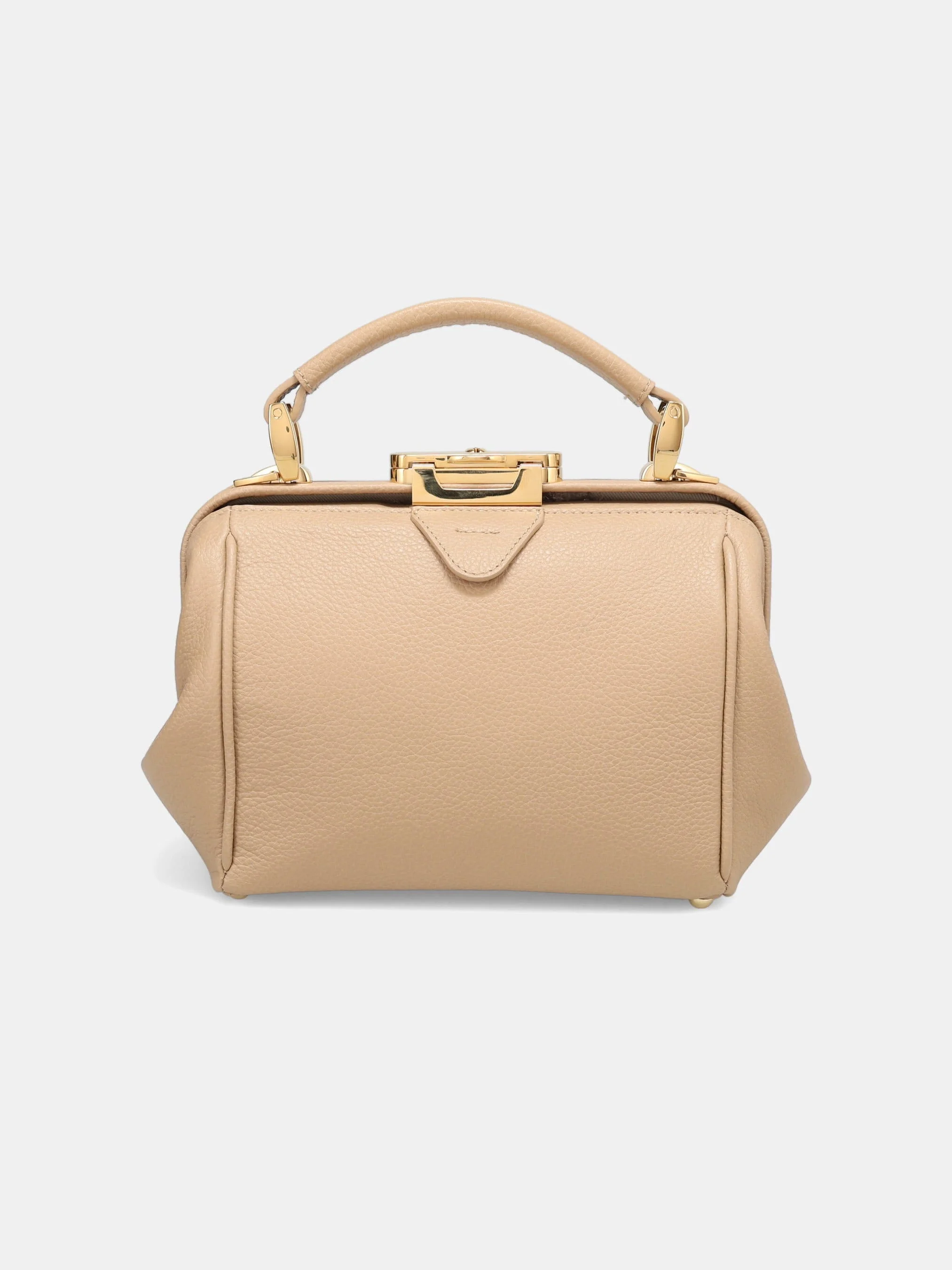 You've met The Doctor's Bag and its little sister, The Sophie. Just when you thought their lovely silhouettes couldn't get more elegant¦ introducing The Mini Sophie. We're sure you'll agree that this petite version of our most premium bag is just such a beauty! Our clever designers have taken the structured frame of The Sophie and recreated it on a smaller scale, so that little bag lovers can experience the luxury of our framed Calf Grain leather bags too. Small but mighty, the ingenious structure of the bag allows The Mini Sophie to open almost 180º, revealing a premium cotton twill lining and giving you full, unencumbered access to your belongings. Carry it by its comfortable top handle or slip it over your shoulder with its gorgeous shoulder strap for those easy-going days. Don't forget to snap it shut and lock it with its very own little golden key when it's not in use¦ although we're certain that you'll never want to put it down! - Petite version of The Sophie bag - Structured frame made of Calf Grain leather - Opens almost 180 ¼ for easy access to belongings - Can be carried by top handle or shoulder strap - Comes with a little golden key for locking - Premium soft and flexible calf grain leather - Clever branded gold hardware - Detachable shoulder strap - Satisfying click closure - Generous interior with luxurious cotton twill lining SIZE & FIT - Sunglasses - Lipstick - Phone - Purse/Wallet - Keys - Chewing Gum - Apple External (Including Handle): - H: 8.07 inches - W: 10.63 inches - D: 3.54 inches External (Excluding Handle): - H: 6.69 inches - W: 10.63 inches - D: 3.54 inches Internal: - H: 6.30 inches - W: 8.46 inches - D: 2.95 inches Strap Drop: Short: 12.20 inches Long: 19.69 inches *All measurements are approximate and can vary slightly as each bag is handmade from a natural material.* External (Including Handle) H: 20.5cm W: 27cm D: 9cm External (Excluding Handle) H: 17cm W: 27cm D: 9cm Internal H: 16cm W: 21.5cm D: 7.5cm Strap Drop Short: 31cm Long: 50cm