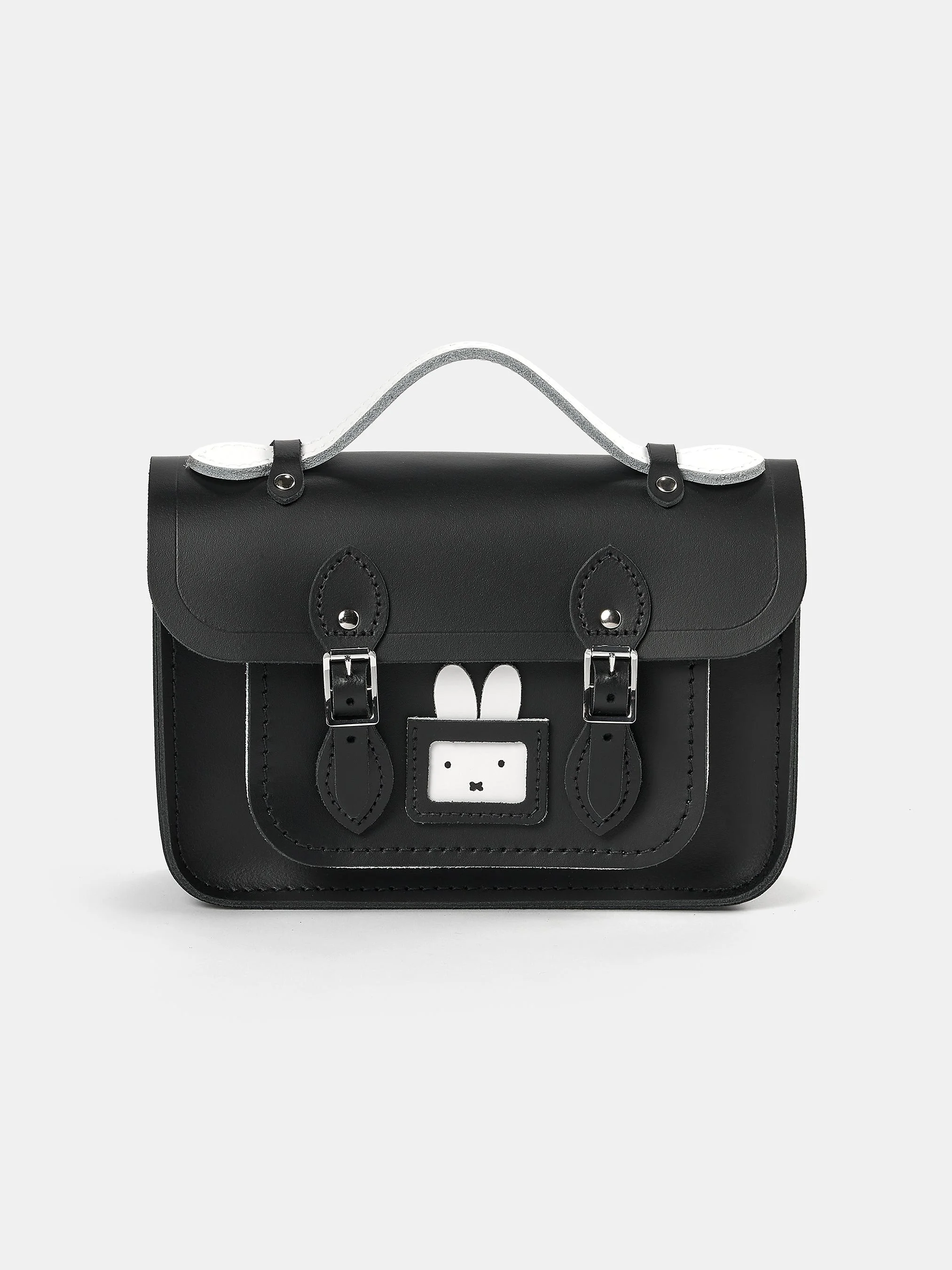 Oh, hi Miffy! She's playing peekaboo on one of our classics - and in chic black leather, she looks super elegant too! Made with the same care and precision as our standard sized Satchel, this smaller version features a handy top handle (actually qualifying it as a Batchel - but let's not get into that) as well as a slim, detachable and adjustable shoulder strap, making it the perfect day bag. Grab it when you're dashing out to meet friends in the park or hopping on the back of a bicycle made for two. - Made in England from 100% leather - Made with the same care and precision as our standard sized Satchel - Slim, detachable and adjustable shoulder strap - Solid construction with magnetic closures - Characteristic front pocket with enough room for a slim purse or compact - Includes a dust bag for safe storage SIZE & FIT - Sunglasses - Lipstick - Phone - Purse/Wallet - Keys - Chewing Gum External (Including Handle): - H: 7.48 inches - W: 8.46 inches - D: 2.36 inches External (Excluding Handle): - H: 5.91 inches - W: 8.46 inches - D: 2.36 inches Internal: - H: 5.12 inches - W: 7.28 inches - D: 0.98 inches Pocket Internal: - H: 3.15 inches - W: 4.92 inches - D: 0.39 inches Strap Drop: Short: 20.87 inches Long: 30.31 inches *All measurements are approximate and can vary slightly as each bag is handmade from a natural material.* External (Including Handle) H: 19cm W: 21.5cm D: 6cm External (Excluding Handle) H: 15cm W: 21.5cm D: 6cm Internal H: 13cm W: 18.5cm D: 2.5cm Pocket Internal H: 8cm W: 12.5cm D: 1cm Strap Drop Short: 53cm Long: 77cm