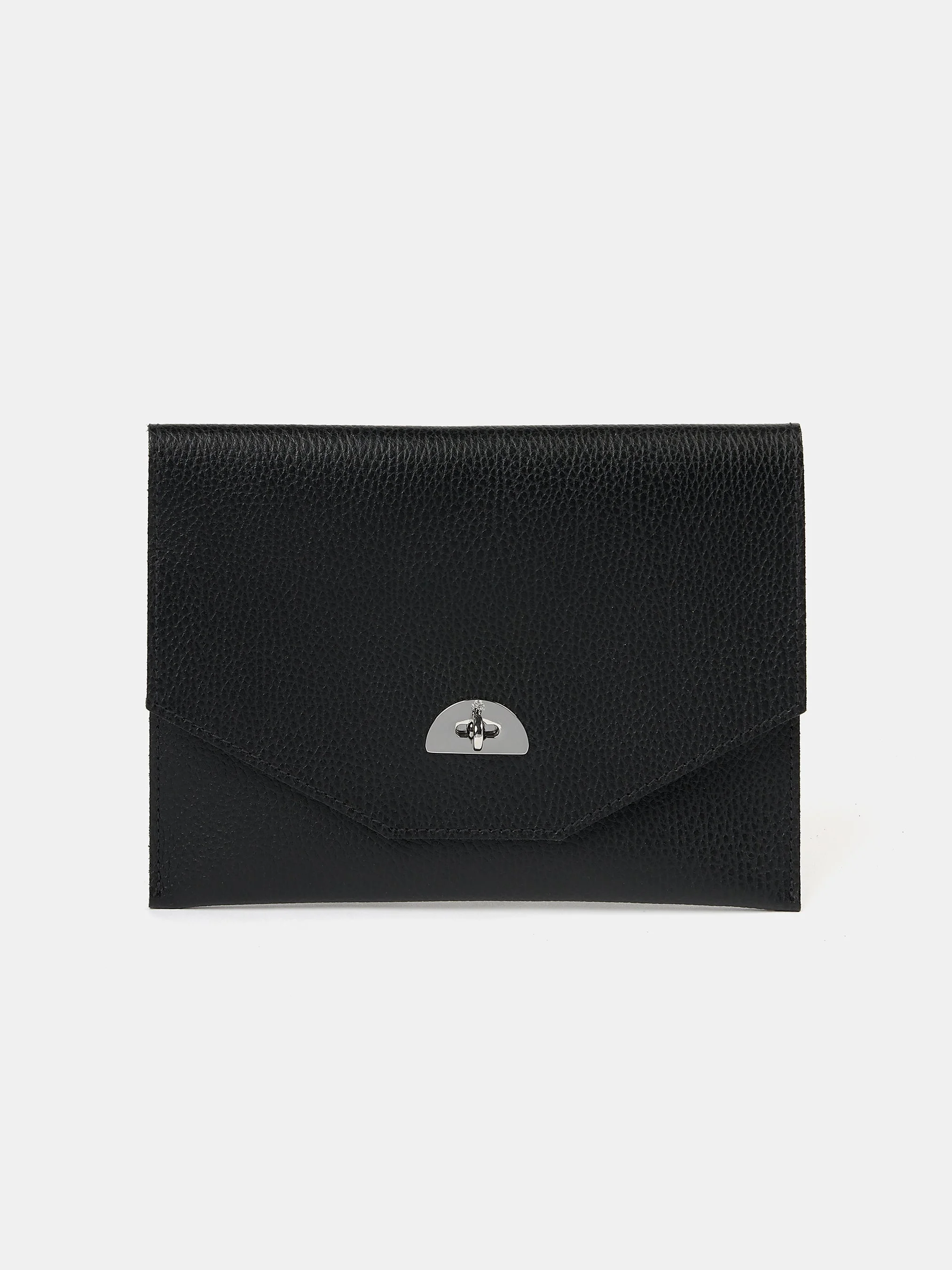 A refined take on the evening clutch, the Twist Lock Pouch is the perfect companion for elegant occasions. Handcrafted in England from Celtic Grain leather, it offers a beautifully textured finish that enhances its timeless appeal. Secured with our signature twist-lock hardware—both a functional detail and a statement feature—this sleek design is compact yet practical, carrying your essentials with effortless sophistication. - Made in England from 100% leather in a textured Celtic Grain finish - Luxury twist lock hardware - Embossed name on metalwork and discreetly on the reverse of the bag - Comes with a dust bag for safe storage SIZE & FIT External H: 17cm W: 23cm D: 3.5cm