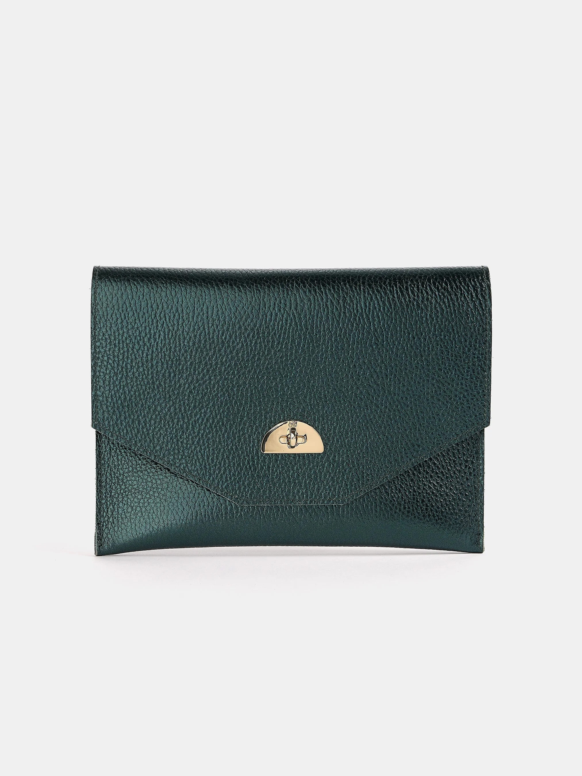 A refined take on the evening clutch, the Twist-Lock Pouch is reimagined for Wicked: For Good in three enchanting colourways: Emerald Metallic, Iridescent, and Black Split Leather. Capturing the essence of the Wicked movie, Glinda’s sparkle, Elphaba’s mystery, and the magic of the Emerald City, each design remains true to the heart of Cambridge Satchel craftsmanship. Handcrafted in England from leather and suede, the pouch offers a beautifully textured finish that enhances its timeless appeal. Secured with our signature twist-lock hardware, both a functional detail and a statement feature, this sleek design carries your essentials with effortless sophistication. -Made in England -Luxury twist lock hardware -Embossed name on metalwork and discreetly on the reverse of the bag -Comes with a dust bag for safe storage SIZE & FIT External H: 17cm W: 23cm D: 3.5cm