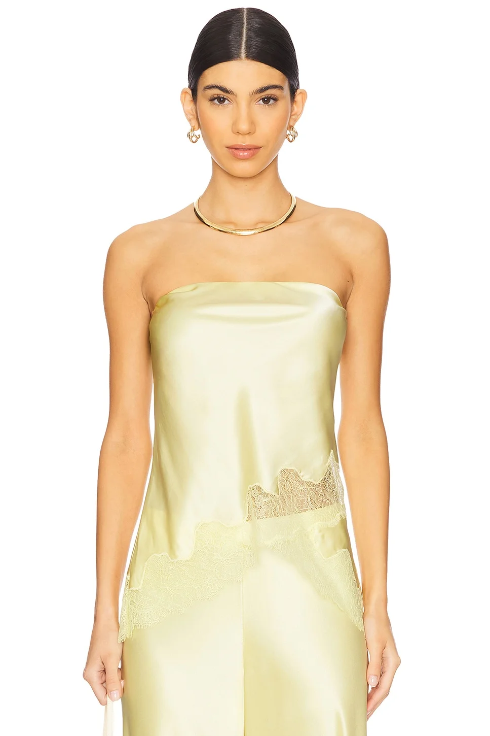 - Self: 100% silk Contrast Fabric: 100% nylon - Dry clean only - Pull-on styling - Elasticized neckline - Floral lace hem - Lightweight satin fabric - Item not sold as a set - Garment is made with a semi-sheer fabric, undergarments can show through - Revolve Style No. CAMN-WS598 - Manufacturer Style No. F24-C06