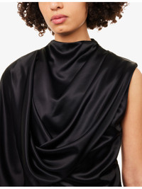 PRODUCT DETAILS - Camilla and Marc woven top - 80% acetate, 20% polyester; lining 100% polyester - Concealed zip fastening at shoulder and back - Relaxed fit, funnel-neck sleeveless, draped, all-over satin texture, asymmetric hem - Dry clean only - True to size - Size UK 8: length 21in / 54cm - Model is 5ft 10in/1.78m and wears a size UK 8 - Lightweight, slight stretch Ref: R04566492