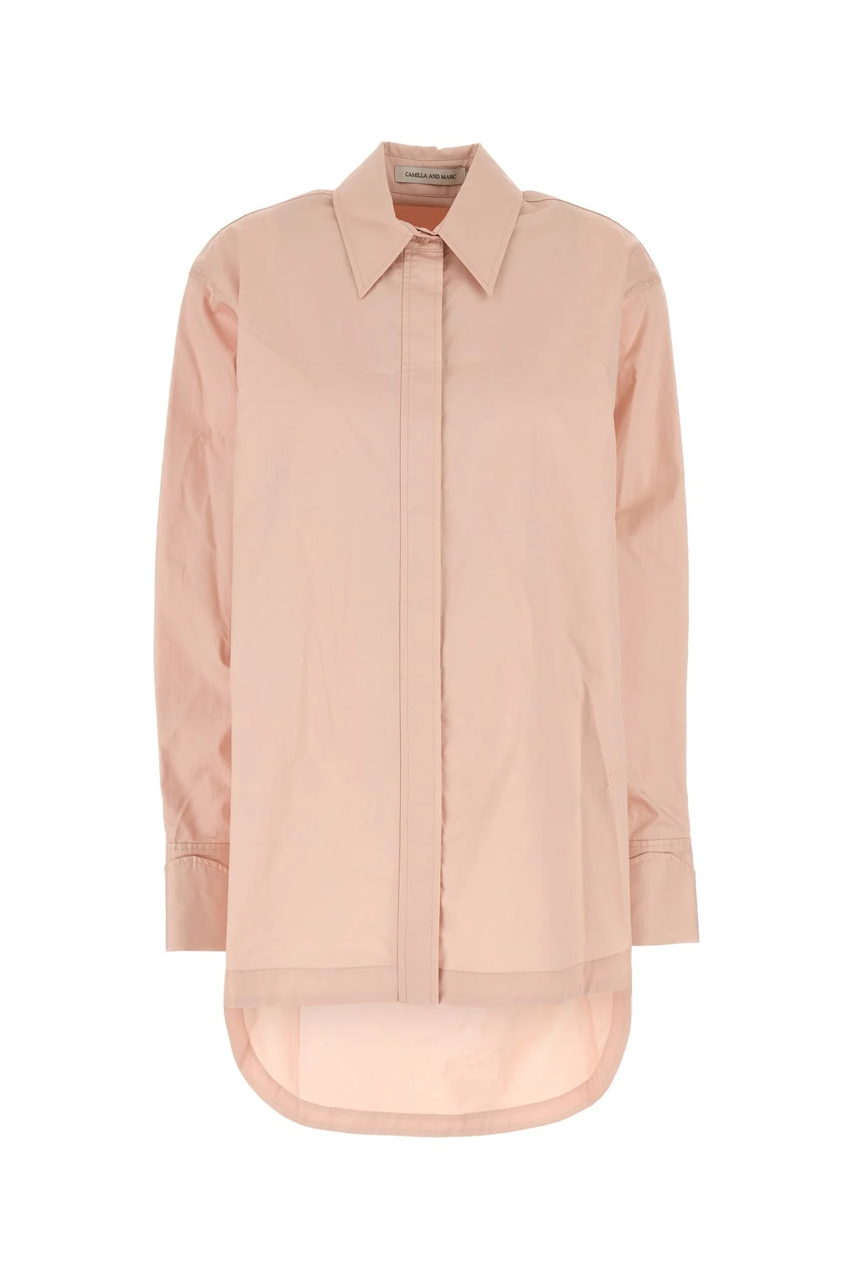 Oversize shirt realized in pure cotton poplin characterized by tonal embroidered logo on the hemline. - Italian collar - Concealed buttons closure - Angle cuffs with buttons - Rear yoke - Lateral slits on the hemline - Slightly longer back DETAILS Pastel pink poplin Porte oversize shirt Exterior: 100% Cotton Made in china Sample size: 6