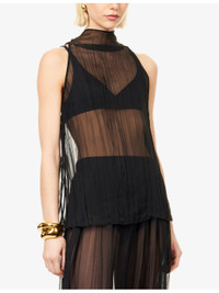 PRODUCT DETAILS - Camilla and Marc woven top - 100% polyester - Button fastening at back - Regular fit, mock-neck, sleeveless, pleated texture, semi-sheer - Dry clean - Size UK 8: length 28.5in / 73cm - Model is 5ft 10in/1.78m and wears a size UK 8 - Lightweight, non-stretch Ref: R04610783