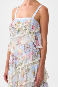 The Tiled In Time Asymmetric Spliced Lace Dress is a handcrafted silk silhouette designed by our in house artisans. Reimagined in an exclusive limited edition print, our relaxed, full length dress is cut with a flowing asymmetric hemline. Finished with delicate ties across strap detailing for soft, adjustable shaping. - 100% Silk - Relaxed Fit - Long Length - Tie Strap Detail - Asymmetric Hem SKU 00036494-TILETIME-XXS Size and Fit Our model is 5'10 (178cm) tall and wears a size S (AU 10). Bust: 40in (101.6cm) Waist: 26.5in (67cm) Hips: 38in (96.5cm) Fabric and Care 100% SILK Silk crinkle chiffon is a sheer, lightweight fabric with a textured surface, crafted for a fluid drape with delicate stretch and a soft bounce.