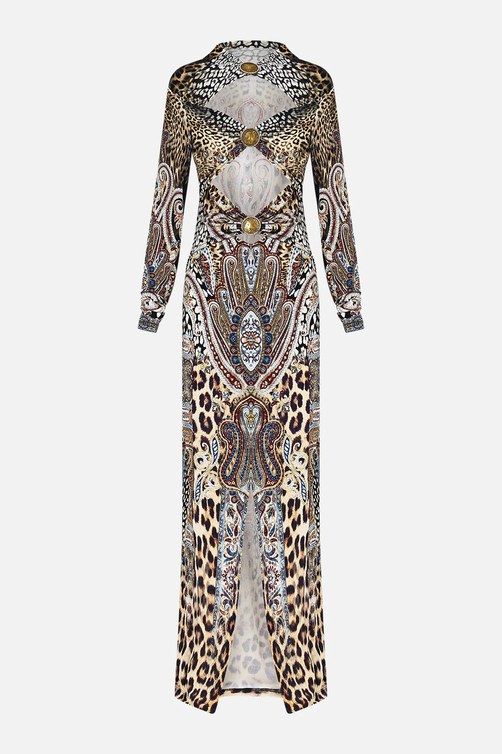 The Istanbul Animalia Back Detail Jersey Dress is a handcrafted silhouette designed by our in house artisans. Reimagined in an exclusive limited edition print, this luxurious maxi dress is slim fitting and features an alluring back detail with opulent, diamond cut outs. Its high neckline is framed by long, fitted sleeves that elongate and sculpt form. - High Neckline - Long Length - Long Sleeve - Slim Fit SKU 00037100-ISTAANIM-XS Size and Fit Our model is 5'10 (178cm) tall and wears a size S (AU 10). Bust: 40in (101.6cm) Waist: 26.5in (67cm) Hips: 38in (96.5cm) Designed and fitted true to size, take your normal size. Fabric and Care 100% VISCOSE Viscose is a fibre crafted from the natural substance, cellulose, known for its softness, breathability and drape. It possesses a subtle sheen and is perfect for lightweight soft tailored silhouettes or more structured styles in heavier weights.