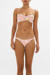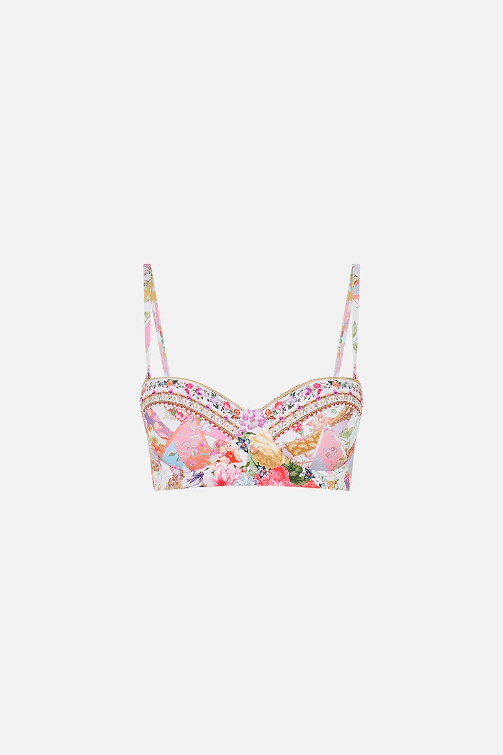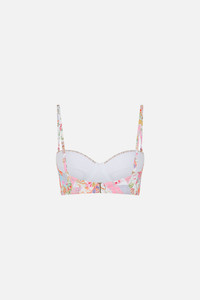 The Sew Yesterday Balconette Underwire Bra wanders through a luscious garden of beautiful blooms adorned with delicate gold chains and captivating jewels. This luxury underwire bikini top features a fitted silhouette with shaped bust cups and sleek underwire support. With adjustable straps and detachable booster pads CAMILLA bikini top exudes elevated resort wear opulence. Explore more from the Wonderkind collection. - Lovingly Handcrafted - Designed in Australia - ECONYL® swim - Fits b-c cup - Removable booster pads - Removable and adjustable straps - Front button detail - Sustainable swimwear SKU 00028329-SEWYESTE-XS Size and Fit Our model wears a CAMILLA S and is 5'10 (178cm) tall. Her standard dress size is an AU 10. She has a 32in (83cm) bust, 35in (89.5cm) hips and a 25in (66cm) waist. Camilla S = AU10 / UK10 / US6 Fabric and Care 82% REGENERATED POLYAMIDE, 18% ELASTANE ECONYL® is an eco-friendly regenerated nylon made entirely from items such as old fishing nets, and industrial plastic recovered from our oceans. ECONYL® is strong, lightweight, and elastic which makes it the perfect fabric for form fitting styles. Its sustainability and water repellent qualities provide a luxurious base for bespoke CAMILLA swimwear.