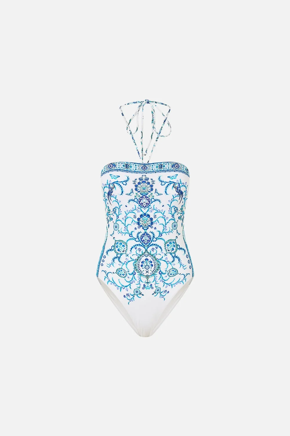 The Isnik Lullaby Bandeau One Piece With Halter Tie is a handcrafted silhouette designed by our in house artisans. Reimagined in an exclusive limited edition print, our bandeau one piece is made with A-C cups in mind, as removable soft cups meet a straight neckline that creates a clean, flattering line. Detachable halter ties allows for versatile styling, before being finished with intricately applied crystal embellishments. - Fits A-C Cup - Removable Soft Cups, Straight Neckline - Regular Leg Line, Regular Bottom Coverage - Removable Halter Tie - Crystal Embellishment SKU 00037504-ISNILULL-XS Size and Fit Designed and fitted true to size, take your normal size. Fabric and Care MAIN: 82% REGENERATED POLYAMIDE, 18% ELASTANE ECONYLÆ is regenerated nylon, crafted from waste materials that would otherwise end up polluting our Mother Earth. Its beauty lies in its ability to be recycled, remoulded and ultimately reused time and time again. An infinitely recyclable product that keeps our planet looking beautiful, it opens the door to a circular fashion sphere.