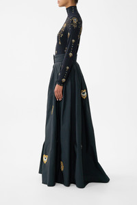 The Amulets And Alchemy Belted Taffeta Maxi Skirt is a handcrafted silhouette designed by our in house artisans. Reimagined in an exclusive limited edition print, this taffeta maxi skirt is cut in a fit and flare shape with a wide waistband that falls to a full length, sweeping skirt. It comes with a separate belt for styling versatility and features hand embellishments for decadent detail. - Long Length - Fit And Flare - Separate Belt - Wide Waistband - Pleated - Hand Embellished SKU 00038434-AMULALCH-XS Size and Fit Our model is 5'10 (178cm) tall and wears a size S (AU 10). Bust: 40in (101.6cm) Waist: 26.5in (67cm) Hips: 38in (96.5cm) Fabric and Care 100% POLYESTER