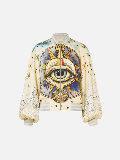 Designed in Australia, the Soap Opera Bomber Jacket unfolds colourful painterly prints inspired by handcrafted soap packaging—a sensory journey of bespoke artistry and vibrant design Lovingly handcrafted, this bomber jacket exudes luxury with its dazzling crystal embellishments and encased elastic cuffs and hem, ensuring a tailored silhouette. Fully lined for an indulgent feel, it also features sophisticated front pockets, seamlessly combining opulence with functionality. - Encased Elastic Cuffs And Hem - Fully Lined - Front Pockets - Crystal Hand Embellishment SKU 00037998-SOAPOPER-S Size and Fit Our model wears a CAMILLA S and is 5'10 (178cm) tall. Her standard dress size is an AU 10. She has a 32in (83cm) bust, 35in (89.5cm) hips and a 25in (66cm) waist. Camilla S = AU10 / UK10 / US6 Fabric and Care 80% LINEN, 20% SILK Grown organically, this lightweight natural fibre offers a timeless aesthetic that adds durability and longevity to any wardrobe. Its breathability keeps your skin cool, minimises moisture and ensures effortless comfort.