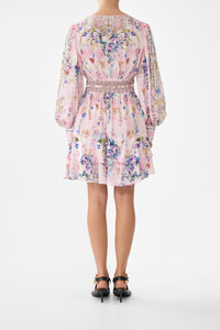 The Palatial Pastels Button Front Frill Dress is a handcrafted silhouette designed by our in house artisans. Reimagined in an exclusive limited edition print, our short fit and flare dress features a V neckline that meets a shaped waistband with an elasticated back for comfort and fit. Finished with button front details and soft frill accents for feminine movement. - 100% Silk - V Neckline - Short Length - Blouson Sleeve - Fit And Flare - Silk Crepe Fabric - Crystal Embellishment SKU 00038302-PALAPAST-XXS Size and Fit Our model is 5'10 (178cm) tall and wears a size S (AU 10). Bust: 40in (101.6cm) Waist: 26.5in (67cm) Hips: 38in (96.5cm) Designed as a relaxed fit. Take your normal size, or select one size smaller for a neater fit. Fabric and Care SELF-100% SILK, CONTRAST-100% SILK Designed as a relaxed fit. Take your normal size, or select one size smaller for a neater fit.