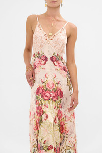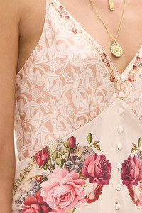 Designed in Australia, the Meet Me At The Majestic Button Front Strappy Dress echoes the charm of Majestic Cafe. Romantic tones and delicate florals blend with delicate desires, inspired by its rich artistic spirit. Lovingly handcrafted, this CAMILLA silk mini dress features an elevated fit-and-flare silhouette with a fitted bodice cinched in at the waist with ruched waistband. The full-length skirt gathers from the waistband and flows down to a mid-thigh hemline, while soft blouson sleeves taper into a wide cuff with a button enclosure at the wrist. - Slim Fit Bodice With Flared Panelled Skirt - Full Length - Button Through Front - Adjustable Straps - - SKU 00035705-MEETMAJE-XS Size and Fit Our model wears a CAMILLA S and is 5'10 (178cm) tall. Her standard dress size is an AU 10. She has a 32in (83cm) bust, 35in (89.5cm) hips and a 25in (66cm) waist. Camilla S = AU10 / UK10 / US6 Designed and fitted true to size, take your normal size. Fabric and Care 100% SILK CHARMEUSE Silk satin embodies a sumptuously smooth finish that offers a rich buttery touch to the skin. As a result of the satin weaving technique, it masterfully creates a fuller bounce to the body and drape details.