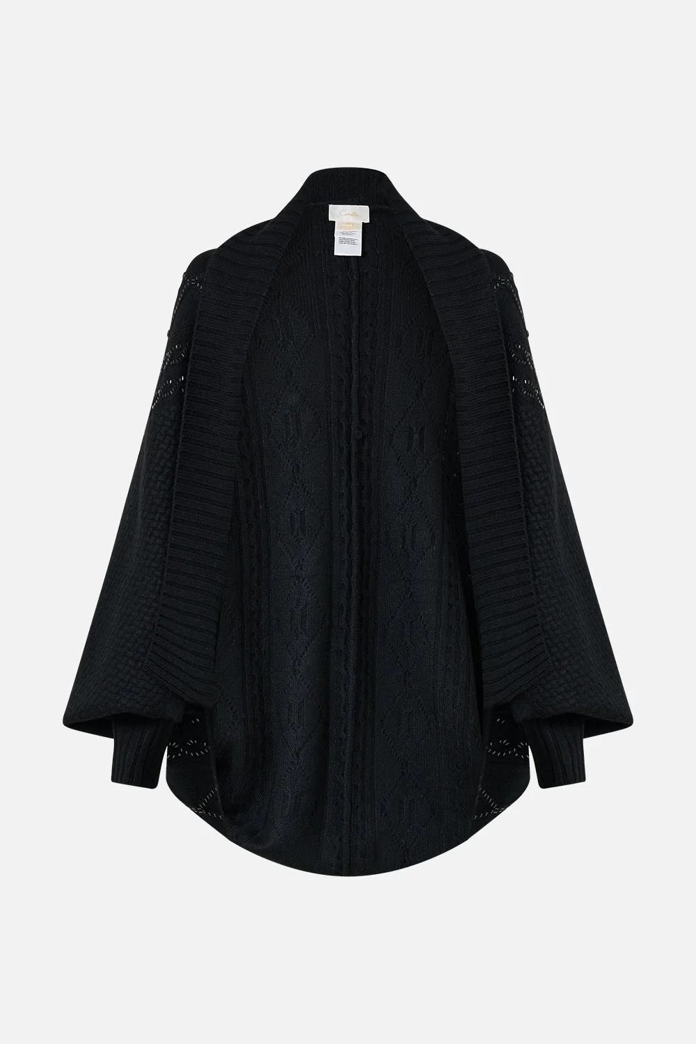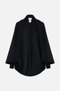 Designed in Australia, the Solid Black Cable Knit Layer celebrates the vivid charm of artisanal soap packaging, showcasing colourful painterly prints infused with marketplace magic. Lovingly handcrafted, this cable knit layer offers a relaxed fit with a curved hem. The cable knit design and crystal embellishments add texture and sparkle to this opulent piece. - Relaxed Fit - Curved Hem - Cable Knit - Crystal Embellishment SKU 00035425-SOLIDBLA-O/S Size and Fit Our model wears a CAMILLA O/S and is 5'10 (178cm) tall. Her standard dress size is an AU 10. She has a 32in (83cm) bust, 35in (89.5cm) hips and a 25in (66cm) waist. Fabric and Care 100% MERINO WOOL Merino Wool is incredibly soft, durable and lightweight. Insulating and temperature regulating for different climates, it's a natural, breathable and biodegradable fiber that wicks away moisture while its hypoallogenic nature makes its perfect for sensitive skin types.