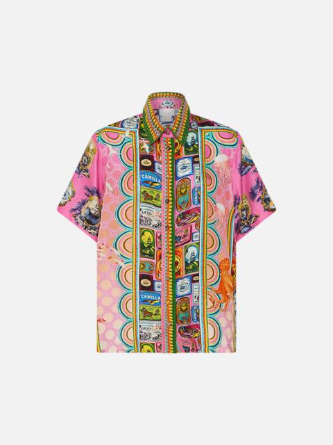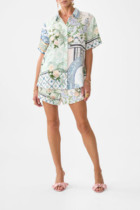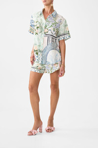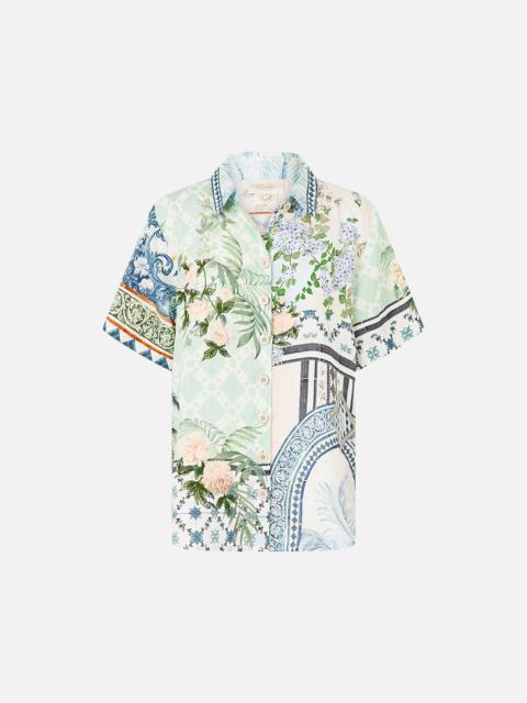 Designed in Australia, The Jardim Party Classic Shirt invites you to the Palacio De Estoi, Portugal's "Pink Palace," weaving romantic florals with rococo arches and intricate tiles, echoing the whimsy of Versailles-style gardens. Lovingly handcrafted, this classic shirt combines effortless sophistication with timeless appeal. The regular fit and hip-length cut create a refined silhouette, while the button-front closure offers understated structure. Half sleeves add a modern, yet classic touch, making this piece a versatile staple for any wardrobe. - Regular Fit - Hip Length - Button Front Closure - Half Sleeve - Crystal Embellishment SKU 00033728-JARDPART-XXS Size and Fit Designed and fitted true to size, take your normal size Fabric and Care 100% LINEN Linen is a lightweight natural fibre that offers a timeless aesthetic, adding durability and longevity to any wardrobe. Its breathability keeps your skin cool, minimises moisture and ensures effortless comfort.