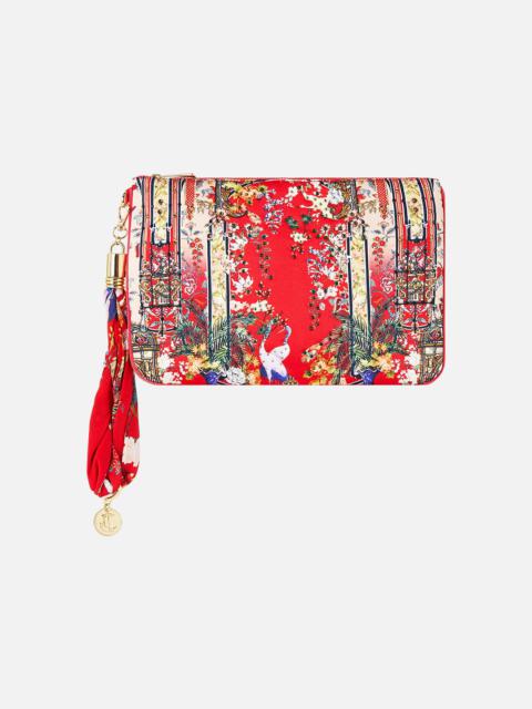 Designed in Australia, The Sal Do Mar Coin And Phone Purse invites you to Portugal’s coast, where bold CAMILLA sardine cans celebrate the sea. A vibrant nod to Lisbon’s Saint Anthony Festival of music, laughter, and fresh flavours. Lovingly handcrafted, this purse showcases a stunning bespoke print and a streamlined rectangular silhouette with contrast piped edges. It features a secure zip-top closure and is finished with a custom CAMILLA parrot clip. Inside, the compartment is designed to keep your precious treasures stored in style. - Tassel With Parrot Clip - Internal Card Holder - Contrast Piped Edge - Zip Top Closure SKU 00034122-SALDOMAR-O/S Fabric and Care MAIN: 100% POLYESTER