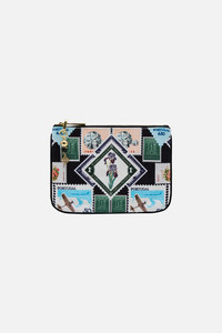 Designed in Australia, My Porto Pen Pal Coin And Phone Purse showcases vintage postcards and stamps, reflecting a nostalgic journey that blends memories and wanderlust into every illustration. Lovingly handcrafted, this purse showcases a stunning bespoke print and a streamlined rectangular silhouette with contrast piped edges. It features a secure zip-top closure and is finished with a custom CAMILLA parrot clip. Inside, the compartment is designed to keep your precious treasures stored in style. - Tassel With Parrot Clip - Internal Card Holder - Contrast Piped Edge - Zip Top Closure SKU 00034125-PORTOPAL-O/S Fabric and Care MAIN: 100% POLYESTER