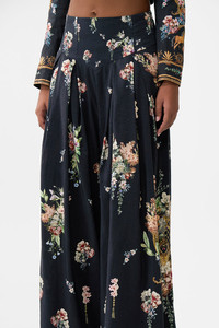 Designed in Australia, the Noble Endeavours Corset Waist Wide Leg Pant embodies a white base fused with florals and golden arches, inspired by the arabesque opulence of the Palace of Queluz and its storied princess chambers. Lovingly handcrafted, these corset waist wide-leg pants offer timeless opulence. A high-waist design, wide-leg silhouette, tuck details, and inseam pockets combine for effortless charm. - High Waist - Wide Leg - Pleat Detail - Pockets - Crystal Embellishment SKU 00034823-NOBLENDE-XXS Size and Fit Our model wears a CAMILLA S and is 5'10 (178cm) tall. Her standard dress size is an AU 10. She has a 32in (83cm) bust, 35in (89.5cm) hips and a 25in (66cm) waist. Camilla S = AU10 / UK10 / US6 Fabric and Care SELF 80% LINEN, 20% SILK - LINING 100% COTTON Grown organically, this lightweight natural fibre offers a timeless aesthetic that adds durability and longevity to any wardrobe. Its breathability keeps your skin cool, minimises moisture and ensures effortless comfort.