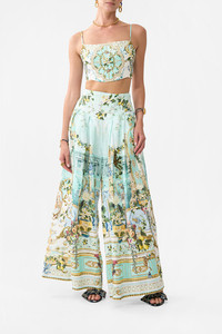 Designed in Australia, The Venus On A Vespa Corset Waist Wide Leg Pant exudes placid blue skies amid ornate archways and gilded borders, a collection reimagining intricate illustrations by Lezio Lopez. Lovingly handcrafted, these corset waist wide-leg pants offer timeless sophistication. A high-waist design, wide-leg silhouette, tuck details, and inseam pockets combine for effortless elegance. - High Waist - Wide Leg - Tuck Detail - Inseam Pockets - Crystal Embellishment SKU 00037983-SICILYSL-XXS Size and Fit Designed and fitted true to size, take your normal size Fabric and Care 100% LINEN L-80% COTTON,20% SILK Linen is a lightweight natural fibre that offers a timeless aesthetic, adding durability and longevity to any wardrobe. Its breathability keeps your skin cool, minimises moisture and ensures effortless comfort.