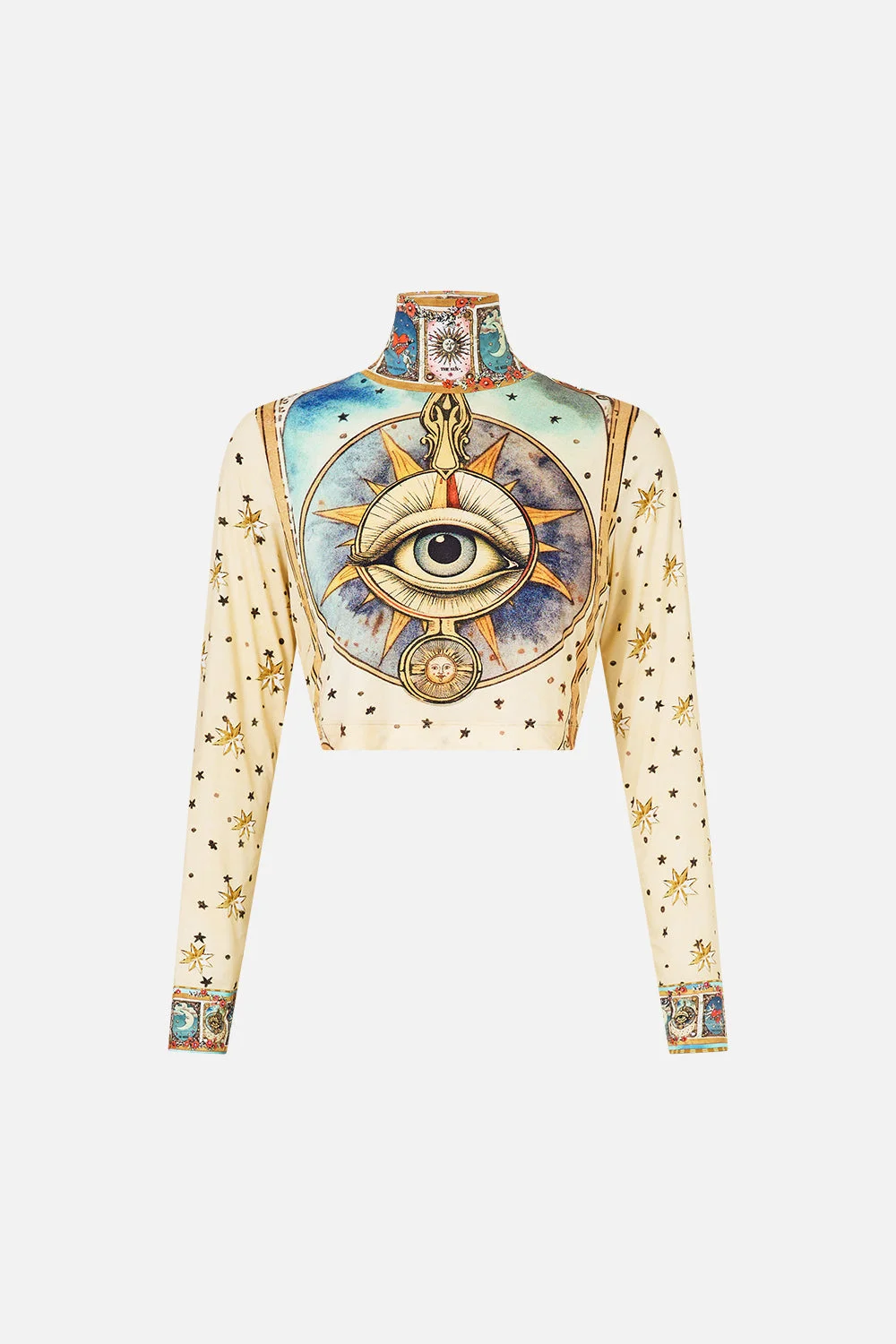 The My Lucky Stars Cropped Jersey Turtleneck is a handcrafted silhouette designed by our in house artisans. Reimagined in an exclusive limited edition print, this jersey turtleneck is cut with a fitted, cropped fit to sculpt the feminine form. Its features long sleeves that are framed by a high neckline which balance the cropped hemline. - Fitted - Cropped Length - Long Sleeves - Turtle Neck SKU 00036813-LUCKSTAR-XS Size and Fit Our model is 5'10 (178cm) tall and wears a size S (AU 10). Bust: 40in (101.6cm) Waist: 26.5in (67cm) Hips: 38in (96.5cm) Designed and fitted true to size, take your normal size. Fabric and Care 82% RECYCLED NYLON / 18% ELASTANE