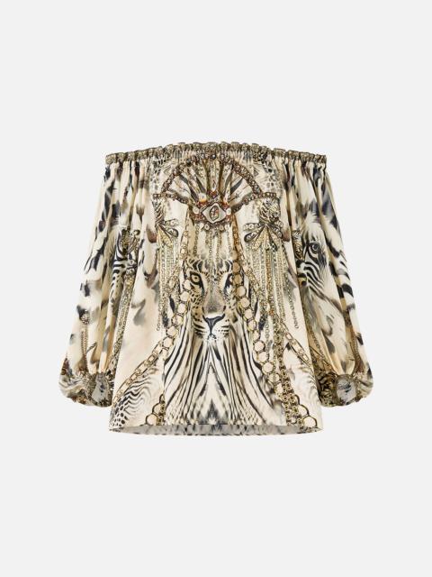 The Sultanahmet Summer Cropped Wrap Shirt is a handcrafted linen silhouette designed by our in house artisans. Reimagined in an exclusive limited edition print, our cropped wrap shirt embodies femininity as a fitted body is cinched with generous ties at the back. Elevated with a collar and long sleeves that dance at elbow length, this blouse tapers along the wrists with detailed cuffs. - 100% Linen - Full Length Blouson Sleeves With Elasticated Cuffs - Cropped Length - Multiway Front Tie - Collar + Stand - Crystal Embellishment - Collar Embroidery Detail SKU 00038903-SULTSUMM-XXS Size and Fit Our model is 5'10 (178cm) tall and wears a size S (AU 10). Bust: 40in (101.6cm) Waist: 26.5in (67cm) Hips: 38in (96.5cm) Designed and fitted true to size, take your normal size. Fabric and Care 100% LINEN Made from flax fibres, this lightweight natural fibre offers a timeless aesthetic that adds durability and longevity to any wardrobe. Its breathability keeps your skin cool, minimises moisture and ensures effortless comfort.
