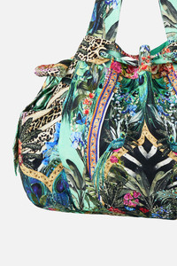 The Animal Alchemy Drawstring Bow Beach Bag is a handcrafted silhouette designed by our in house artisans. Reimagined in an exclusive limited edition print, our beach bag features a drawstring tie opening and an internal zip pocket to keep essentials secure and is decorated with an oversized bow and crystal embellishments. - Camilla Printed - Crystals - Drawstring Tie Opening - Internal Zip Pocket - Width 56Cm (Top Edge) - Height 43Cm - Strap Drop 34Cm SKU 00039328-ANIMALCH-O/S Size and Fit Our model wears a CAMILLA O/S and is 5'10 (178cm) tall. Her standard dress size is an AU 10. She has a 32in (83cm) bust, 35in (89.5cm) hips and a 25in (66cm) waist. Fabric and Care MAIN: 52% LINEN, 48% COTTON
