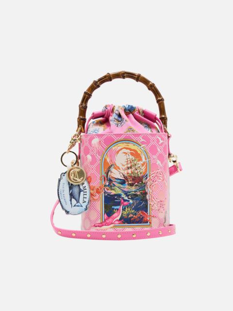 Designed in Australia, The Salty Splendour Drawstring Bucket Bag vibrantly expresses the vibrant ocean energy that mirrors Lisbon's Saint Anthony Festival, alive with music, laughter, and summer's fresh flavours. Lovingly handcrafted, this drawstring bucket bag is a fusion of style and function. Featuring a natural bamboo handle, removable soft pouch, detachable crossbody strap, and CAMILLAfied sardine charm, it’s a versatile accessory with refined appeal. - Natural Bamboo Handle - Removable Drawstring Soft Pouch - Detachable Pu Crossbody Strap - Detachable Keyring Charm - Wicker Base SKU 00034266-SALTSPLD-O/S Fabric and Care MAIN: 100% COTTON