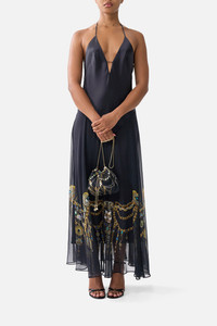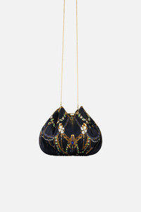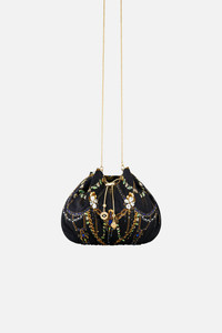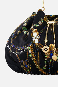 The Amulets And Alchemy Drawstring Pouch Bag With Chain Strap is a handcrafted accessory designed by our in house artisans. Made from CAMILLA printed silk, our pouch features an intricately placed crystal encrusted exterior, soft quilted lining and a sleek box chain strap. A statement carryall crafted for luminous evenings and hands-free styling. - 100% Silk - Camilla Printed Silk - Crystals - Chain Strap - Tassels - Quilted Lining - 28Cm W X 18Cm H - Strap Drop 56Cm SKU 00039311-AMULALCH-O/S Size and Fit Our model wears a CAMILLA O/S and is 5'10 (178cm) tall. Her standard dress size is an AU 10. She has a 32in (83cm) bust, 35in (89.5cm) hips and a 25in (66cm) waist. Fabric and Care MAIN: 100% SILK Silk satin embodies a sumptuously smooth finish that offers a rich buttery touch to the skin. As a result of the satin weaving technique, it masterfully creates a fuller bounce to the body and drape details.