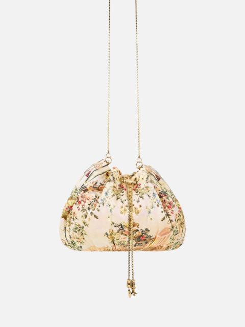 The Twilight In Istanbul Drawstring Pouch Bag With Chain Strap is a handcrafted accessory designed by our in house artisans. Made from CAMILLA printed silk, our pouch features an intricately placed crystal encrusted exterior, soft quilted lining and a sleek box chain strap. A statement carryall crafted for luminous evenings and hands-free styling. - 100% Silk - Camilla Printed Silk - Crystals - Chain Strap - Tassels - Quilted Lining - 28cm Width X 18cm Height - Strap Drop 56cm SKU 00039308-TWILISTA-O/S Size and Fit Our model wears a CAMILLA O/S and is 5'10 (178cm) tall. Her standard dress size is an AU 10. She has a 32in (83cm) bust, 35in (89.5cm) hips and a 25in (66cm) waist. Fabric and Care MAIN: 100% SILK