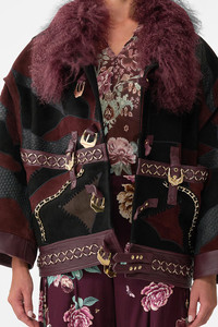 The If These Tiles Could Talk Drop Sleeve Panelled Jacket is a handcrafted silhouette designed by our in house artisans. Reimagined in an exclusive limited edition print, this leather jacket is cut in an oversized fit and adorned with long, dropped sleeves and structured edges. It's fully lined for elevated wearability, a luxurious laying piece for bold expression. - 100% Leather - Oversized Fit - Long Sleeve - Fully Lined - Leather SKU 00036977-TILETALK-S Size and Fit Our model is 5'10 (178cm) tall and wears a size S (AU 10). Bust: 40in (101.6cm) Waist: 26.5in (67cm) Hips: 38in (96.5cm) Designed as an oversized silhouette. Take your normal size, or select one size smaller for a neater fit. Fabric and Care 100% GOAT, LAMB & COW LEATHER